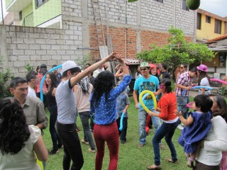 The party was in the yard behind my house, because it was my host family’s niece. Admittedly, it was a bit awkward for me at first when your conversations with people only go so far, due to my limited vocabulary… But Ecuadorian parties are a bit different than American ones in that, in addition to the cake and piñata, there’s a time called hora loca, or crazy hour!