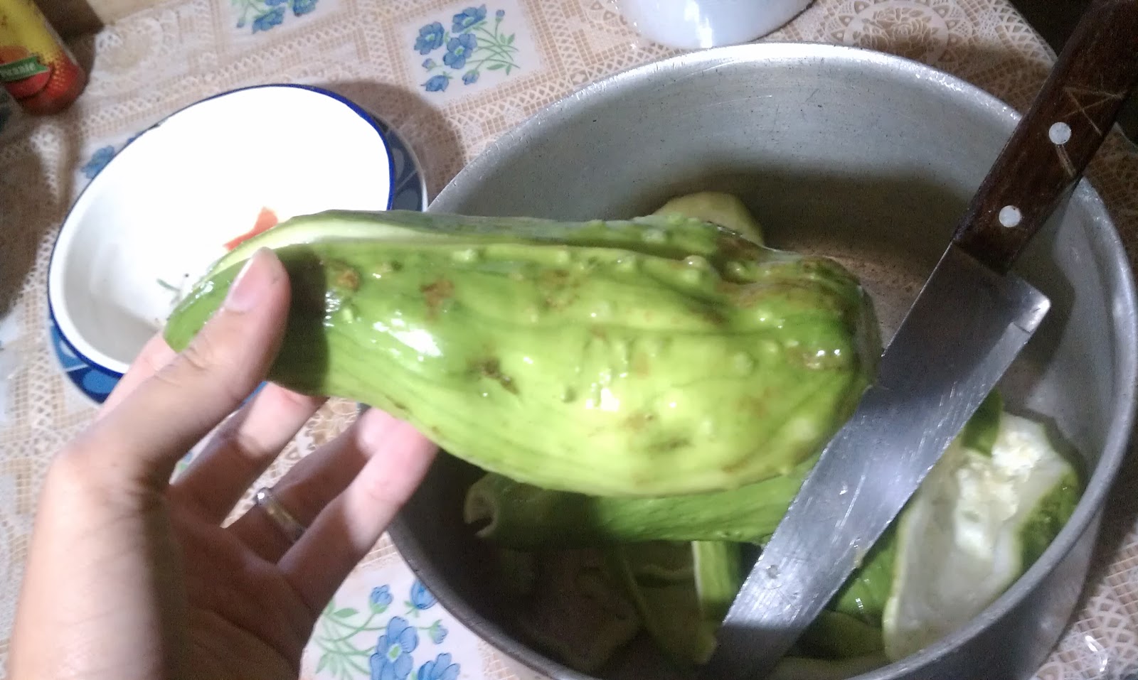 This vegetable from Magdalena’s garden is normally covered with long, green thorns.