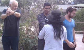 Also bizarre: When you stand on the equator line, the equal pulls of the magnetic poles actually make you weigh less… 2.3 pounds to be exact! For this reason, you have less muscle strength on the line. In these pictures, our tour guide is pulling on the resisting arms of the guys in our group, first about 3 meters from the line where the guys had no problem lifting her… and then on the line where she pulled their arms down with ease!