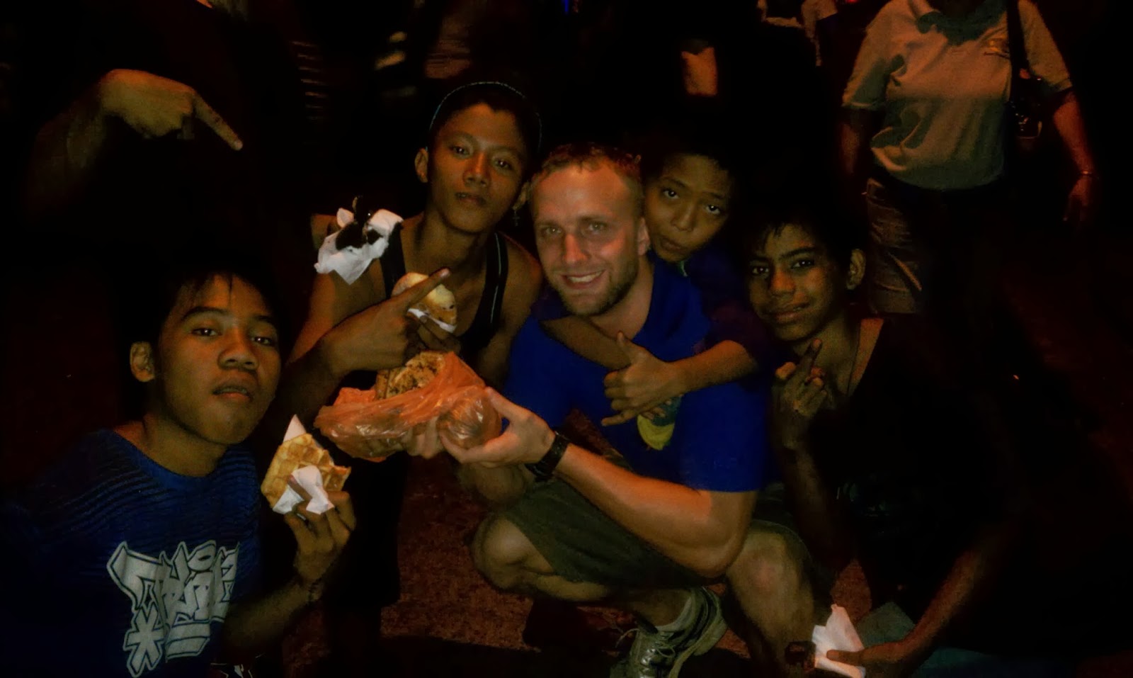 A side-street in Cubao city was eerily quiet. We followed Becky, a longtime street kid worker, into the alley way bearing day-old pastries donated from a local Starbucks.
