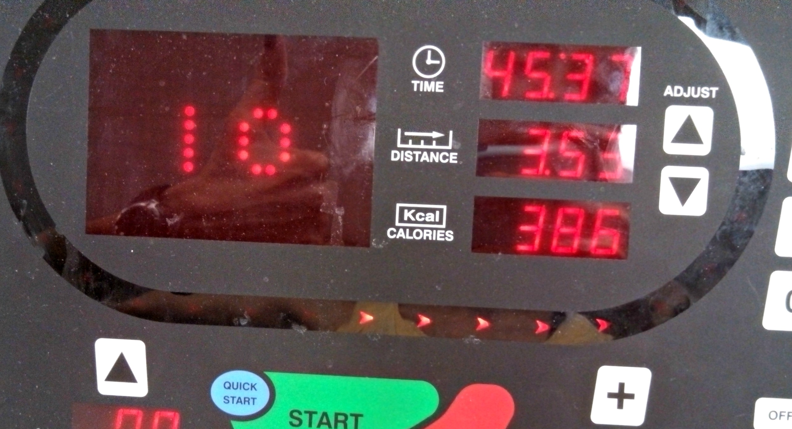 So we thought we’d take it easy today by skipping out on the weight training and doing a steady cardio workout on the tread…