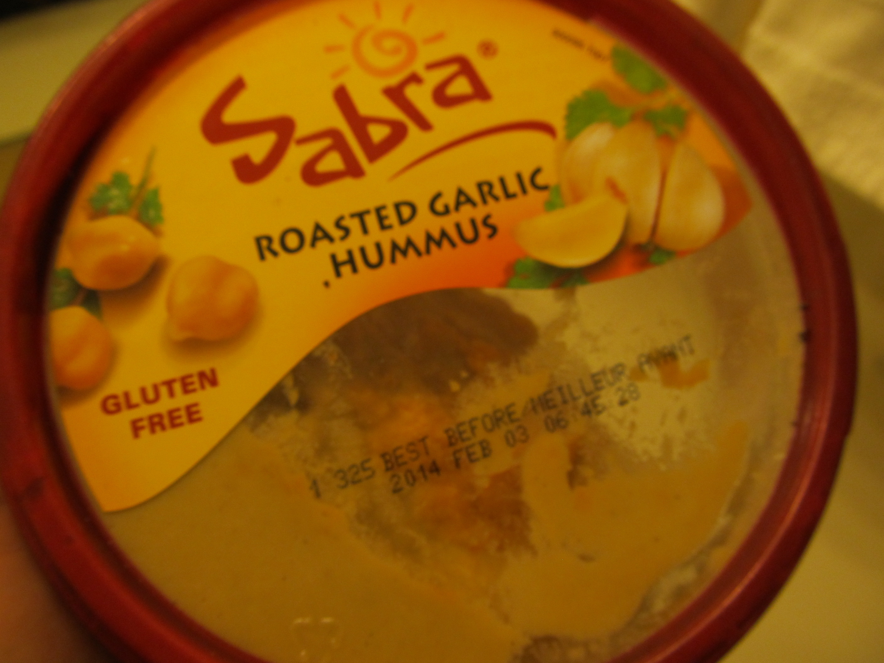 I rummaged around the snacks we brought, and aha! I found garlic-roasted hummus: