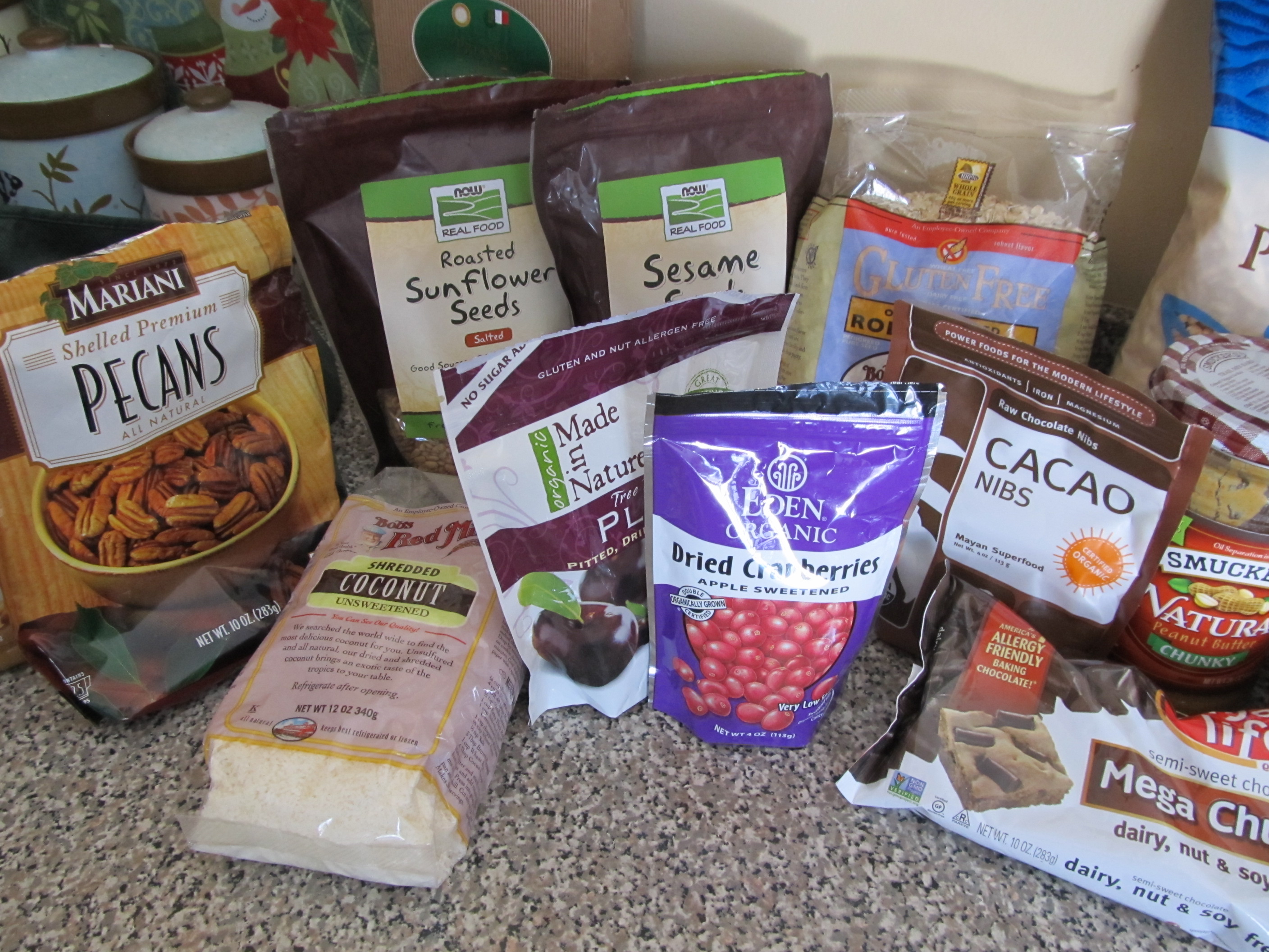 We made a few ingredient substitutions for cost-benefit reasons. Since we were doubling the recipe, things like 2/3 cup almond butter and 1 cup of pepitas (pumpkin seeds) gets a little pricey. Here are the substitutions we made: