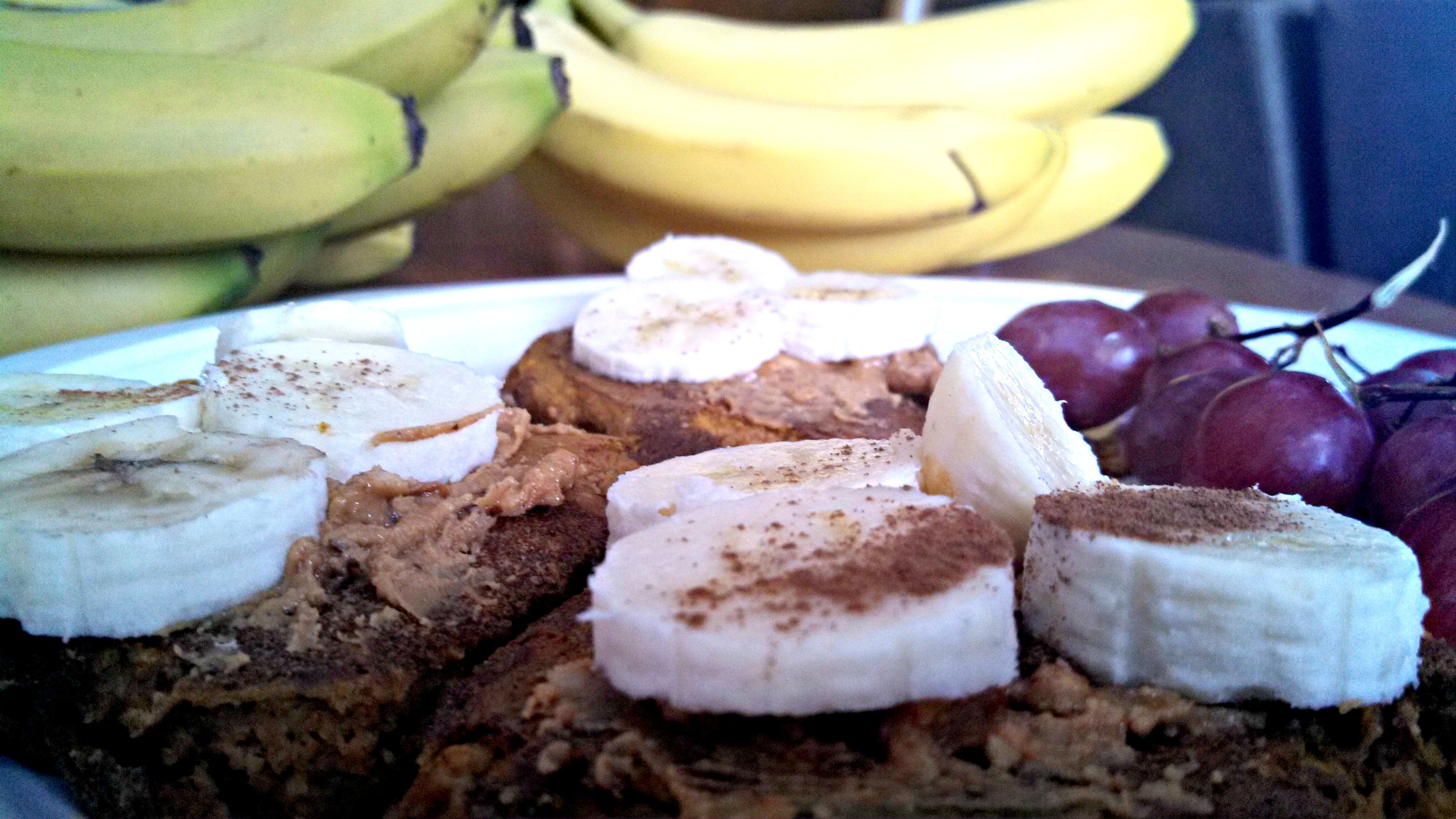 Breakfast was pumpkin pancakes that I made yesterday morning when I had more free-time and stuck in the fridge in preparation for today. When planning ahead pays off!:
