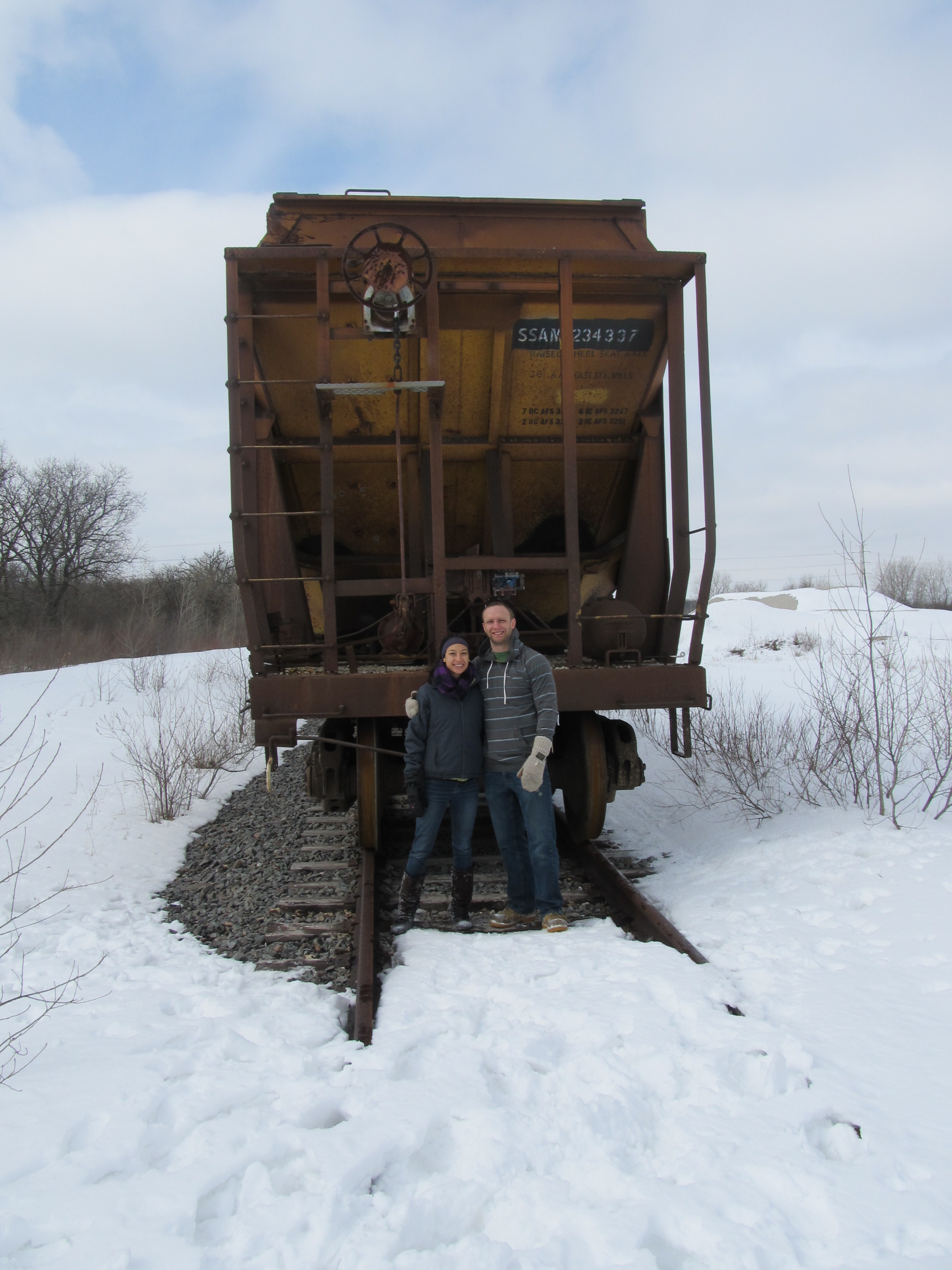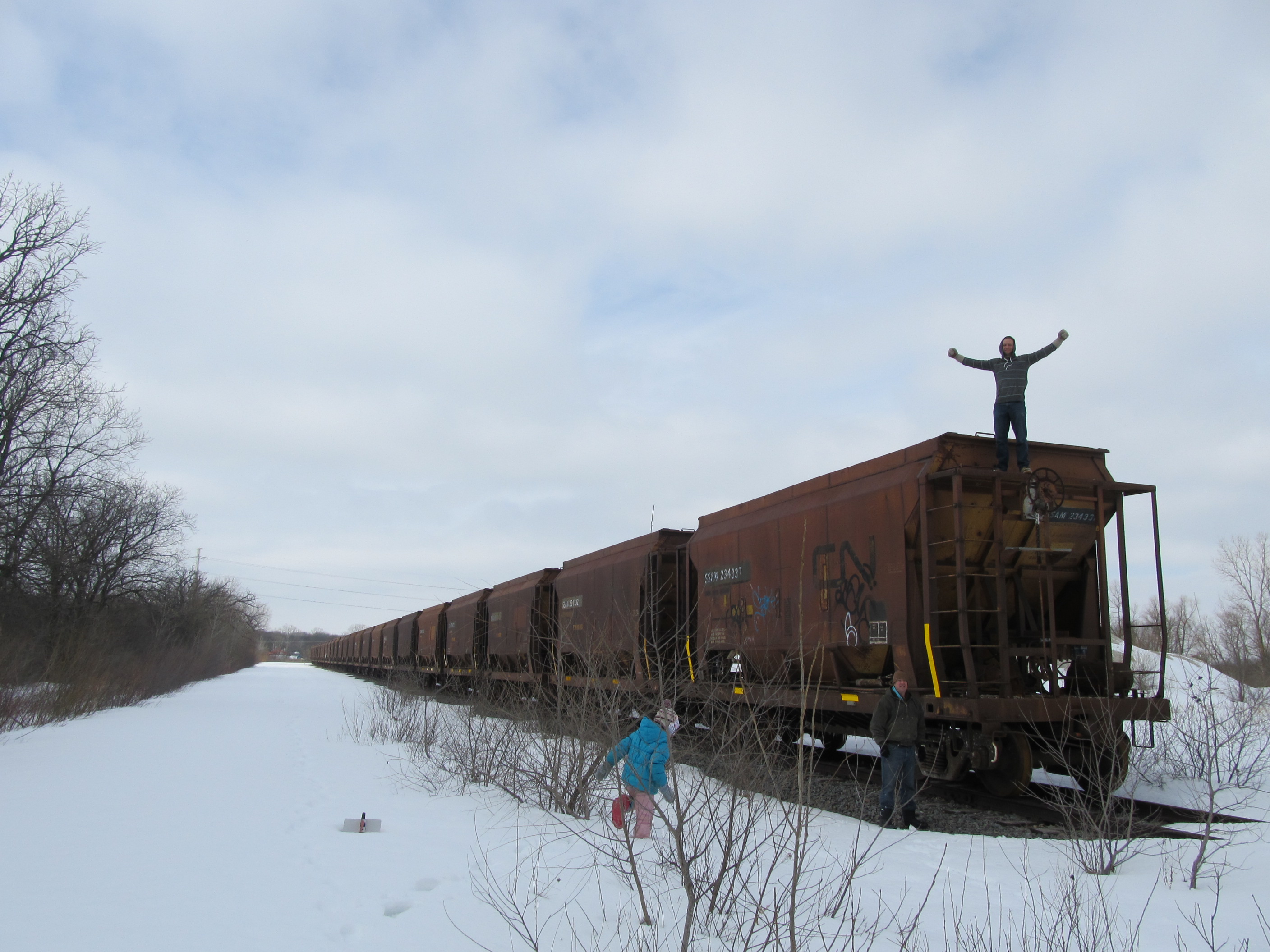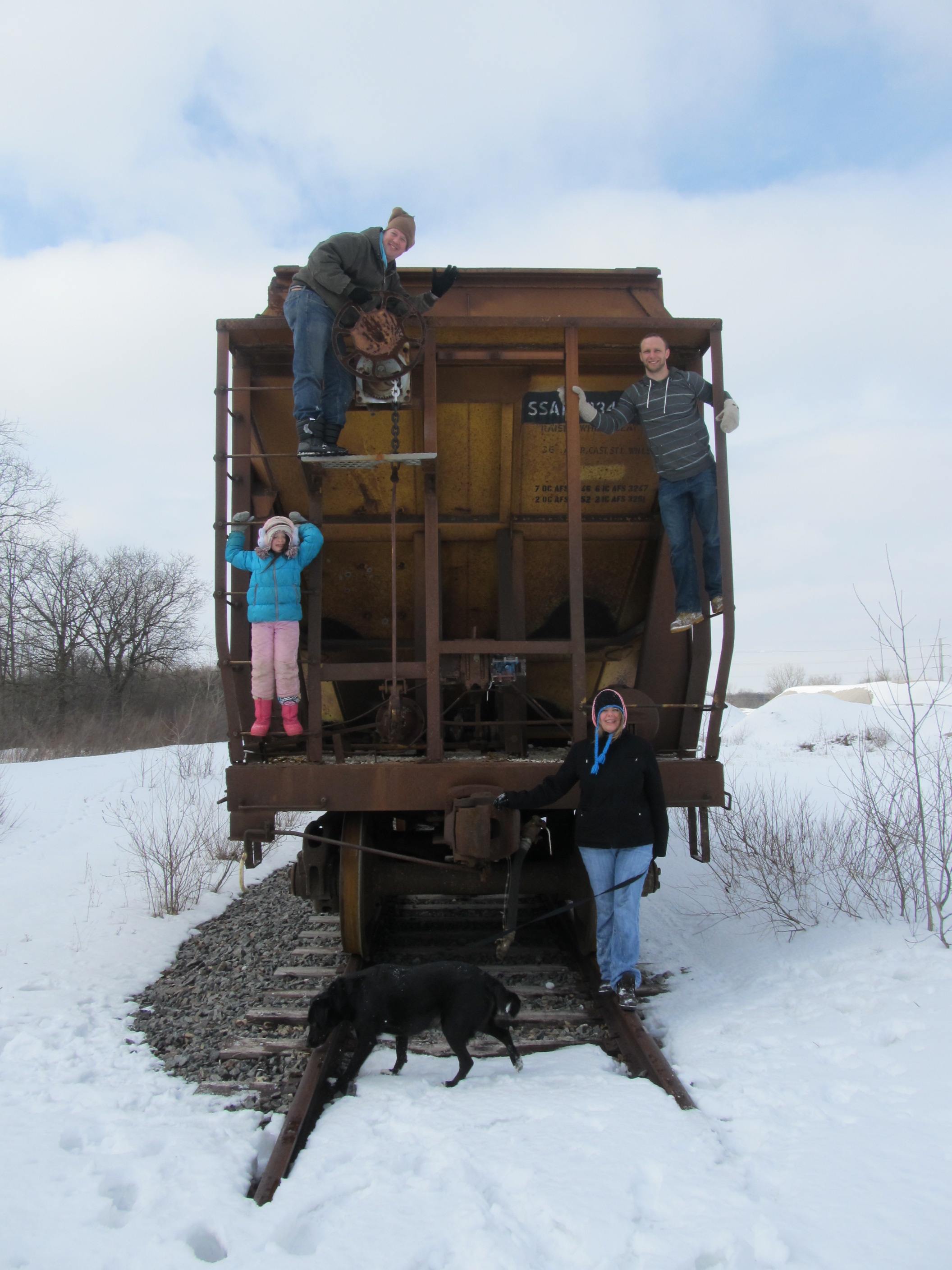 An old train! Just sitting on the tracks covered in snow. Of course we had to climb it.