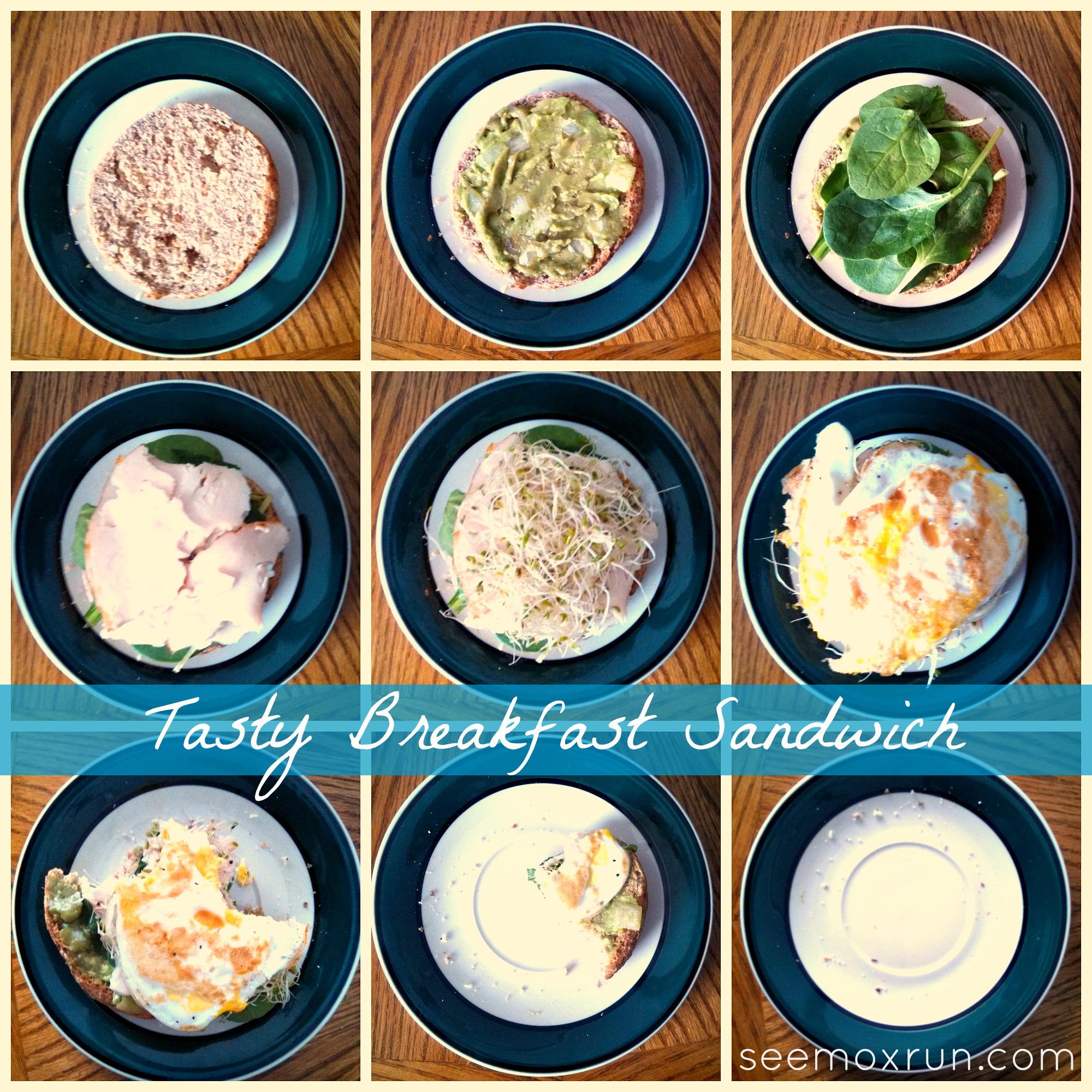 I’m excited to share today’s breakfast sandwich with you. It’s hardly a stroke of genius, but the concoction makes me happy none-the-less.
