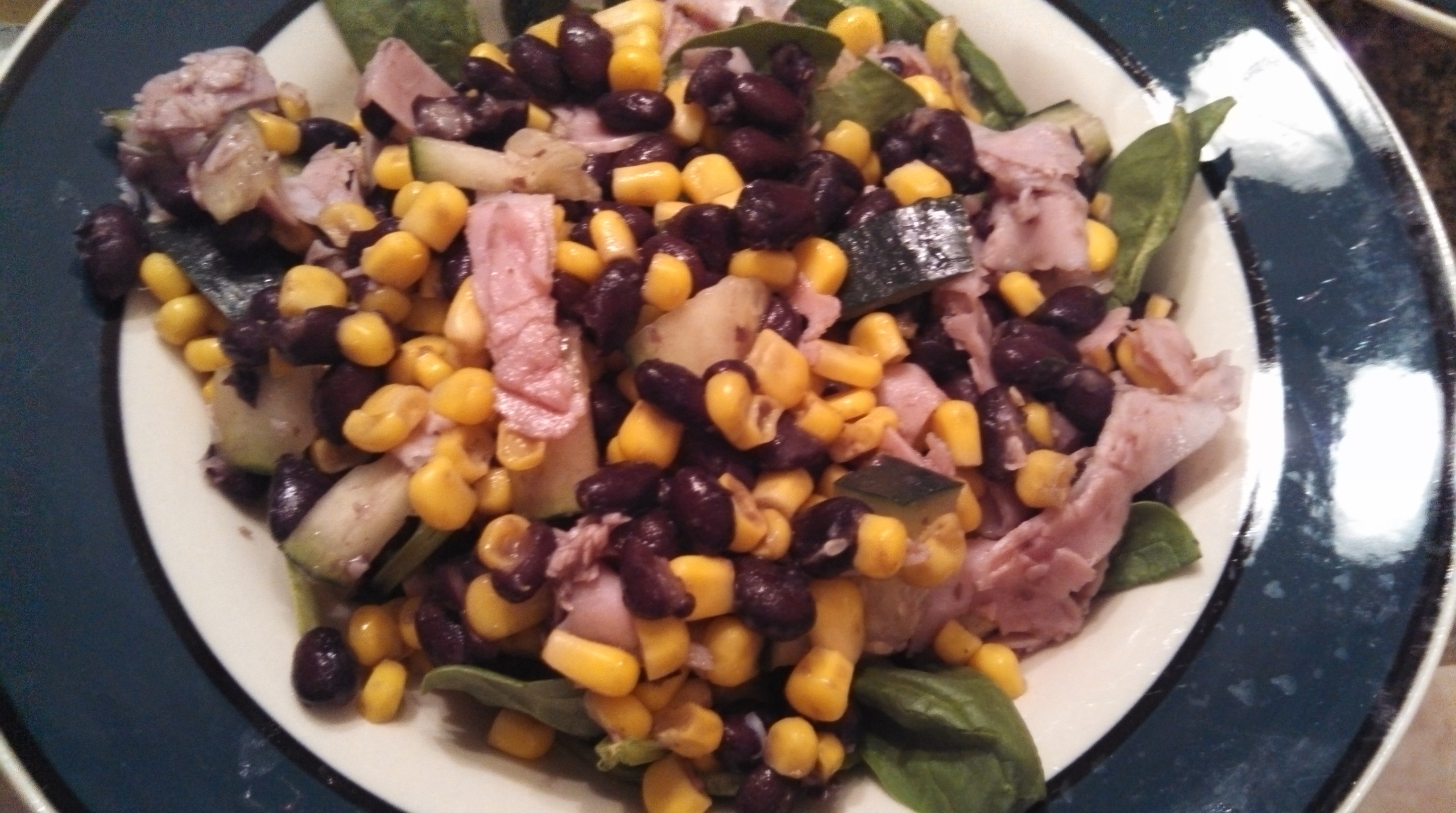 Black bean and deli ham spinach salad