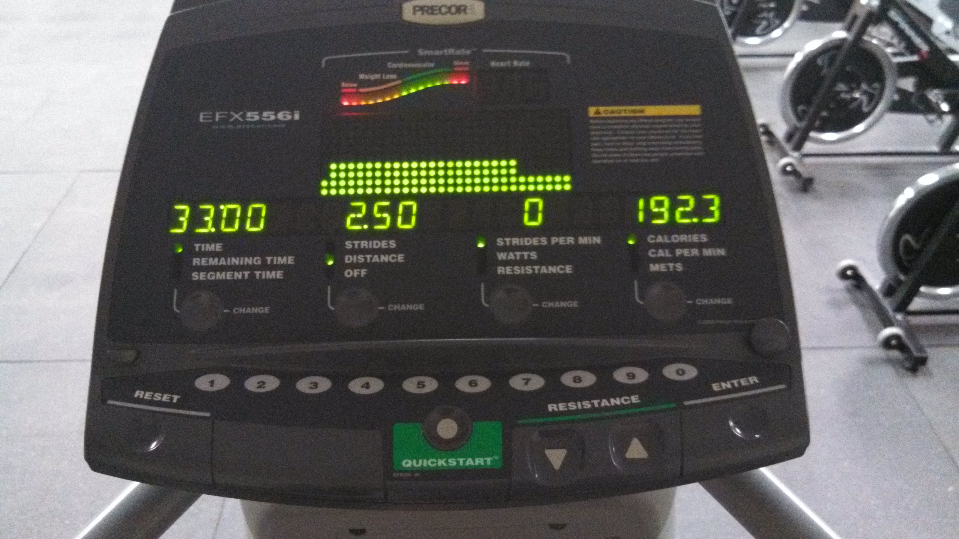 I chose an interval workout that consisted of 4 minutes on level 4 resistance, then 4 minutes on level 10. I did four intervals in all, making for a grand total of 32 minutes. (33 counting the minute warming up on level 0).